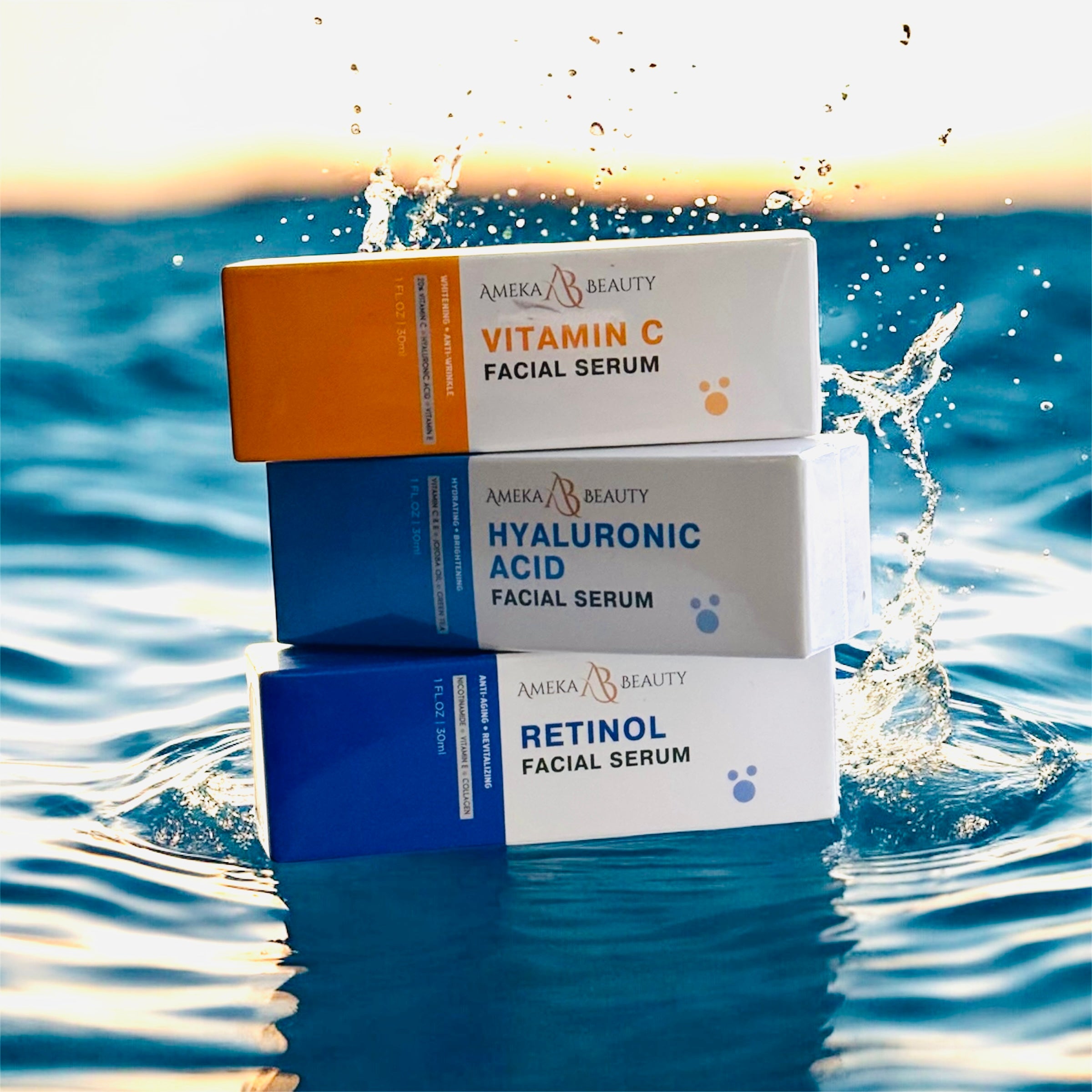 ExploreOur Ameka Beauty serums are crafted with clean, premium ingredients to deliver visible results. From brightening Vitamin C to hydrating Hyaluronic Acid, renewing Retinol, and our radiant Glow formula — each serum is lightweight, effective, and designed for all skin types. Simple, luxurious skincare that empowers your natural beauty every day.